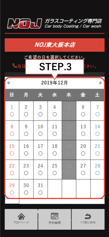 〇になっている日付はご予約いただけます。
