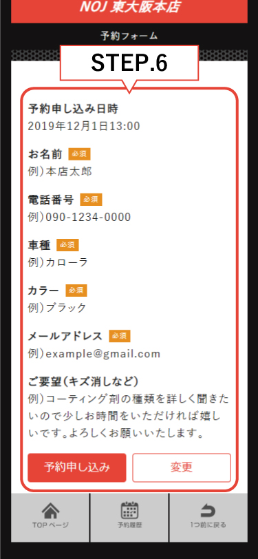 「予約内容の確認」ボタンを押してください。